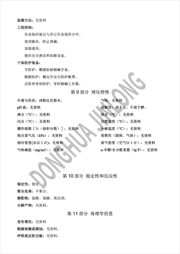 - 浅粉红色粉末,溶于水,水溶液呈酸性。